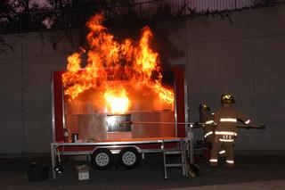 Through a grant from a fire prevention grant from FEMA the Duluth Fire Department purchased a kitchen fire safety trailer. The trailer is a portable classroom with a working stovetop for live demonstrations. A team of trained firefighters teaches the public about fire safety in the kitchen. Once the crowd sees how to put out a grease fire safely, they are shown what happens when water is poured into the burning pan of grease. As the waters hits the hot grease, the grease explodes and flames spread across the ceiling and out of the trailer. Citizens are left with a lasting impression. The team will educate the public on the myths of extinguishing grease fires, such as flour or salt and demonstrate the simple act of sliding a lid over the burning grease and turning off the stove can extinguish the fire.