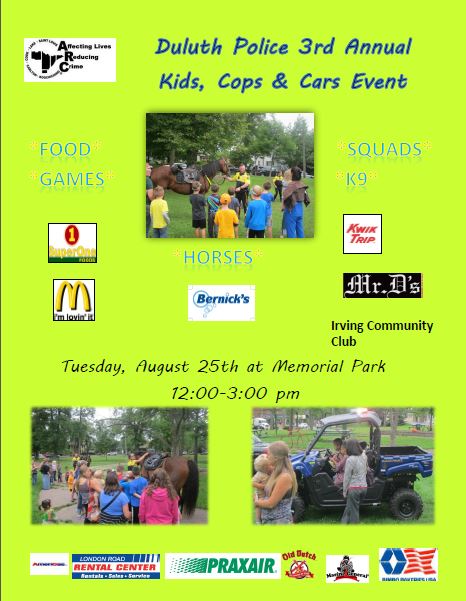 SUBJECT: Duluth Police 3rd Annual Kids, Cops, and Cars Event