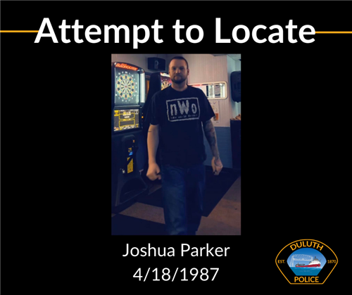 On Sunday, March 19, Duluth Police took a report of a missing persons. The reporting party stated the individual, 35-year-old Duluth resident Joshua Parker, was last seen on Thursday, March 16. Parker is described as being a white male, 6 feet tall, 210 pounds with brown hair, a beard, and brown eyes. He was last seen leaving the Keyboard Lounge (224 3rd Ave in Proctor, MN) wearing a nWo t-shirt, blue jeans, black shoes, and a black jacket. He may have had heavier clothing on described as a Minnesota Wild sweatshirt. Parker was entered into NCIC as a missing persons. If you know of his whereabouts or have any information, you are urged to call 911 and reference ICR# 23037638.